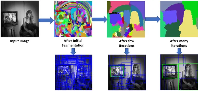 다수의 후보를 적절하게 통합해 나가면, segmentation은 후보 영역의 개수가 줄어들고, 결과적으로 이를 바탕으로 box의 후보 개수도 줄어듦