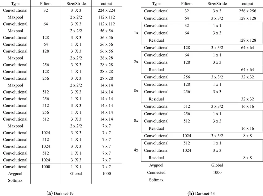 Yolo v1에서는 Darknet-19를 사용하였고, Yolo v3에서는 Darknet-53을 사용하여 정확도를 향상시킴